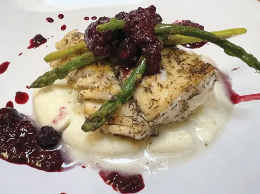They know how to throw down at Kodiak Legends Lodge. Their chef prepared all of this food to perfection. One of the best tastes we tried was that magical green onion sauce shown adorning the plate with the rockfish and green beans. Hospitality specialist Jessica was so sweet to give the author a one-bite serving of this incredible looking cheesecake she had to try! © Melissa Norris